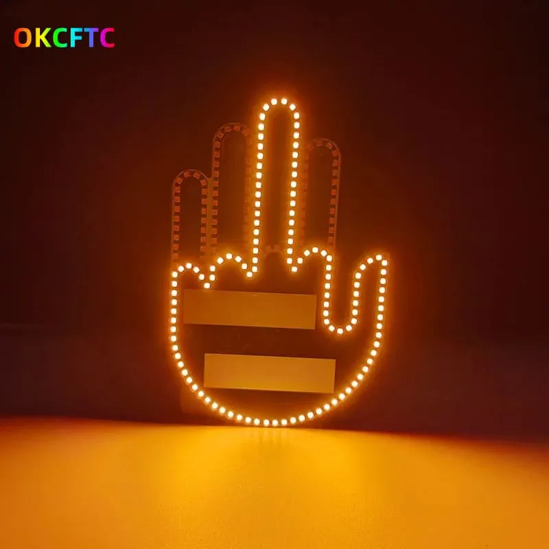Luz engraçada do dedo do carro com controle remoto, Sinais de Corrida Rodoviária, Luz do Gesto Médio, Auto Amber Warning Brake Light